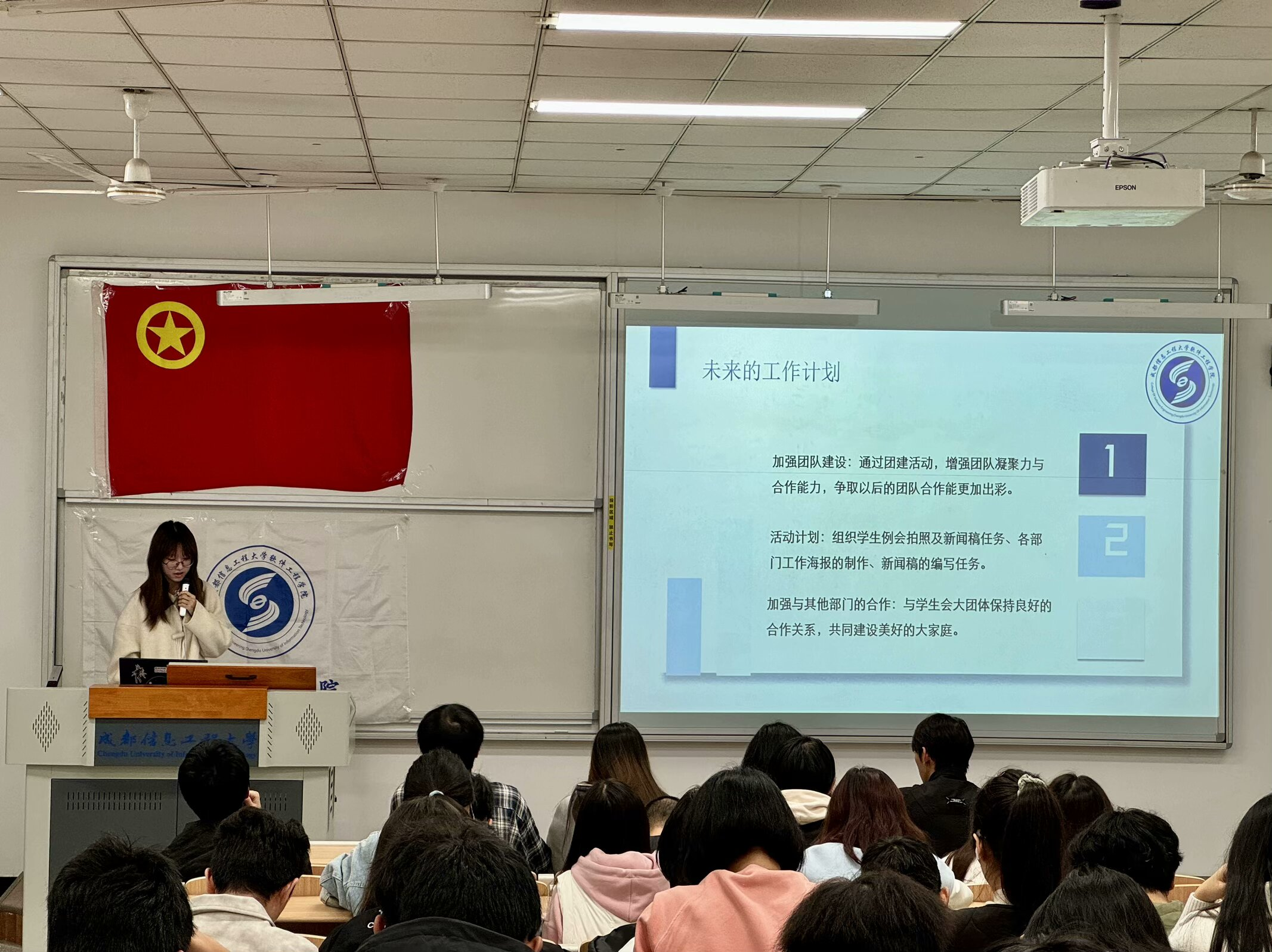会议起始,各部门回顾上月工作,围绕活动成果、活动不足以及解决方案三方面分别进行阐述,分享成功经验和教训,并为下一步工作提供改进和优化的方向。随后团委副书记蒋铠曦就团委学生会整体工作以及各部门忽视的问题提出相关完善措施,鼓励大家在今后的工作中多多开展活动,同时要加强团队合作,提高工作效率,促进各部门的共同成长。