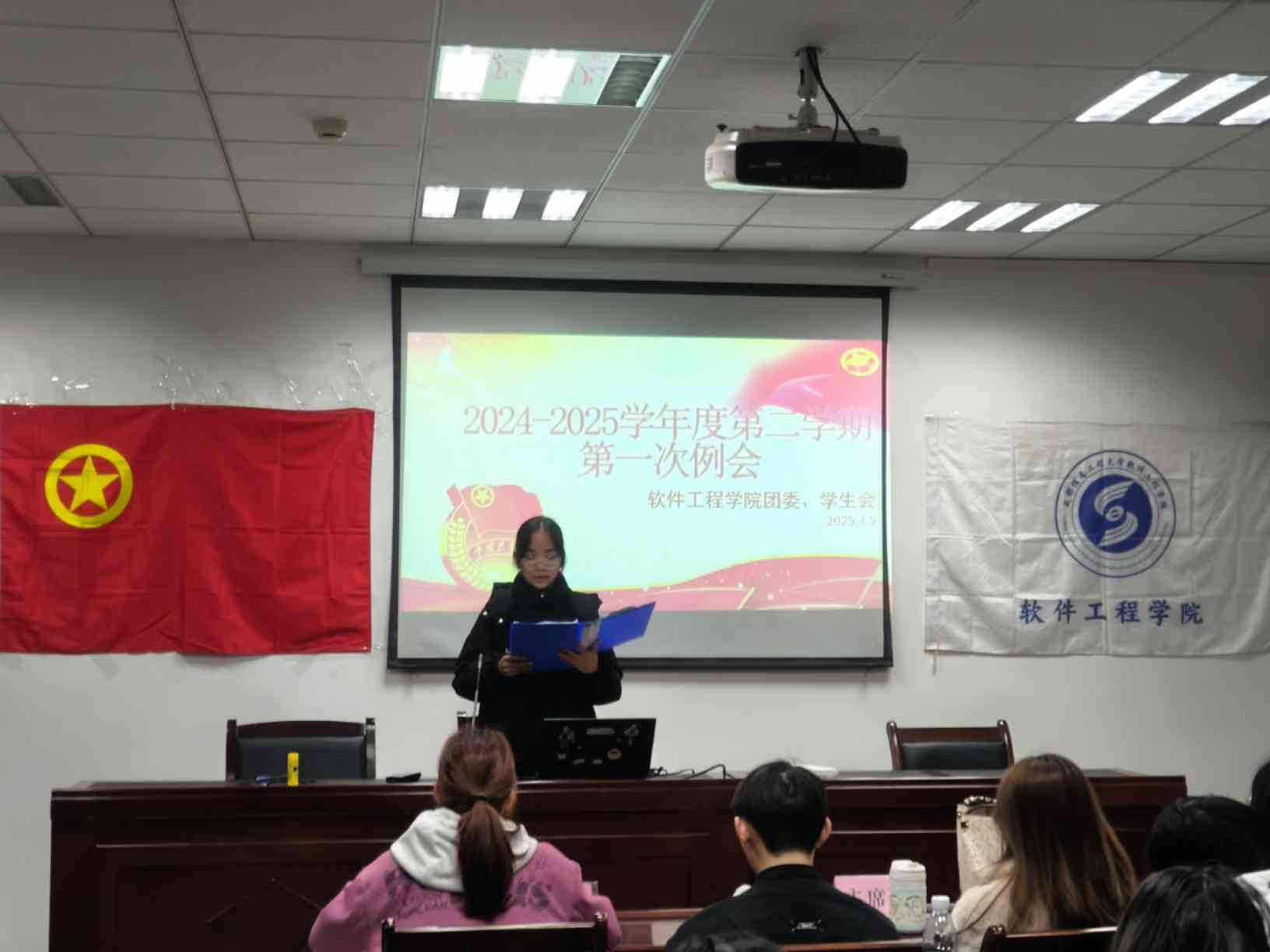 此次会议,伴随郎朗团歌声拉开序幕。各部门代表讲述未来工作规划,并反思仍需改进的工作部分。随后团委副书记蒋铠曦肯定了各部门的工作规划并鼓励部长带动部员积极落实。