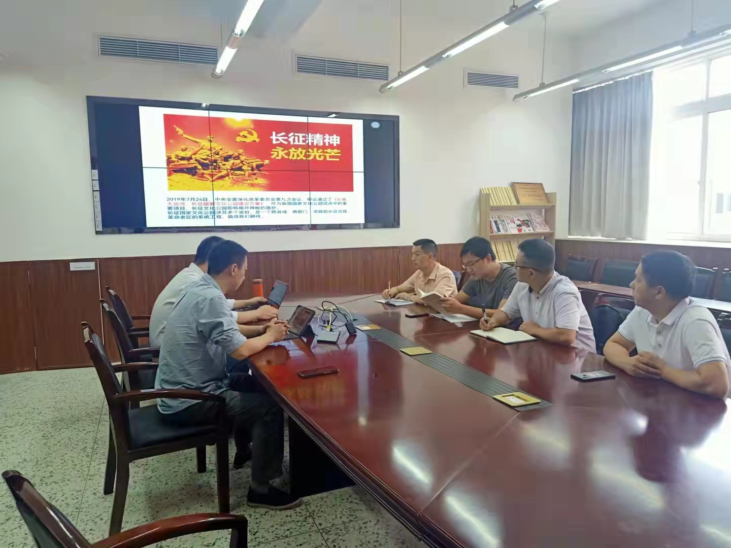 活动首先由气象空间信息工程系何磊主任从历史背景、长征史诗、长征精神永放光芒三个部分重温长征精神,突出重要事件和人物,将整体内容串联起来。同时,还侧重以鲜活的故事情节展现长征精神,彰显理想信念的价值。最后,就“长征精神、永放光芒”的党史学习教育开展了自由讨论,与会人员表示,长征是理想信念的胜利,是用意志和勇气谱写的人类史诗。长征的历史能够让党员牢记“初心和使命”,明白为什么出发,不忘走过的路,坚定奋斗目标勇往直前。