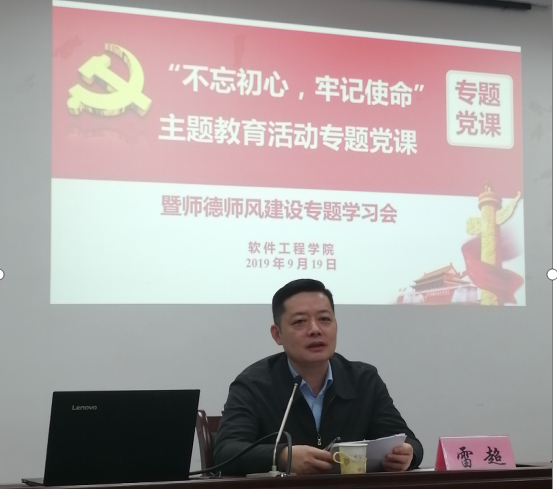 雷超围绕教师无上光荣、严管才是厚爱、细节决定成败三个方面展开报告。他结合党的十八大以来习近平总书记有关讲话精神,深刻解读了教师应该具备的道德品质和知识内涵,希望学院教师要牢记习近平总书记关于好老师的四个标准,切实加强师德师风建设,履好教书育人职责;他从党的初心、教师的初心切入,分析了全面从严治党,强化纪律监督和自我约束的重要性,希望党员同志和教师在享受身份带来的荣光的同时,进一步树立红线意识,增强责任意识;他结合学生的成长成才规律,要求全院教职工进一步明确各自的育人担当和职责,强化协同育人,抓好主责主业,真正发挥好学院在教书育人中的基础性支撑作用。