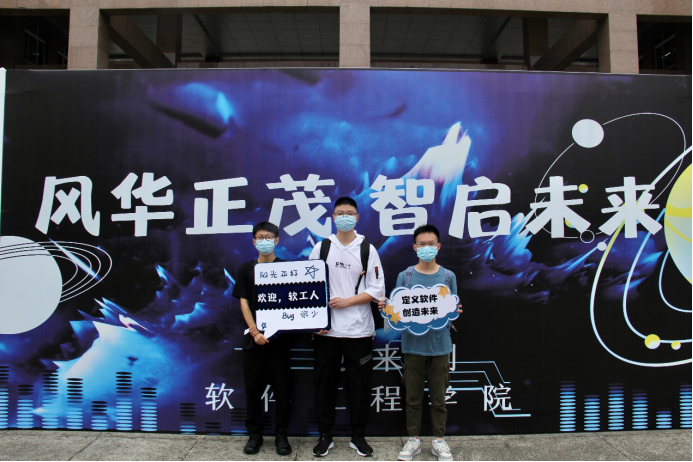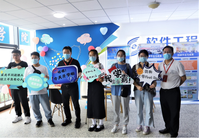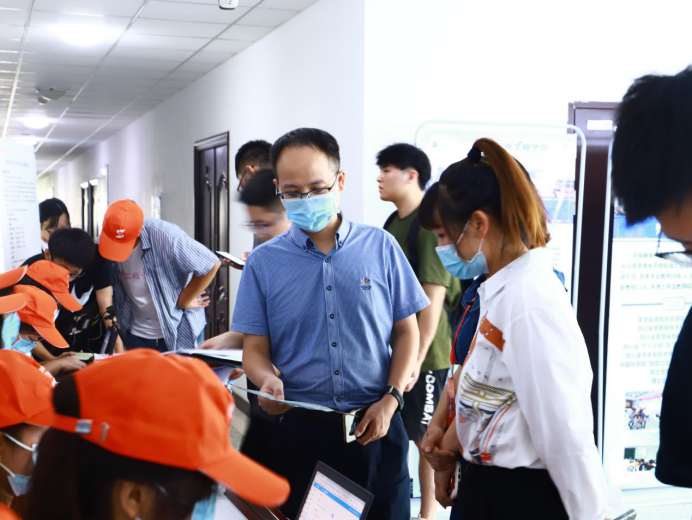 9月8日,2021级新生在信达楼五楼正式开始报到,学院领导、全体辅导员在现场迎接新生。上午,学校党委书记周激流,党委副书记马洪江率党委办公室、校长办公室、党委宣传部、党委学生工作部等部门负责人一行专程来到我院报到点,指导迎新工作,看望慰问新生和工作人员。周激流、马洪江与部分新生进行了亲切交流,并与大家合影留念。