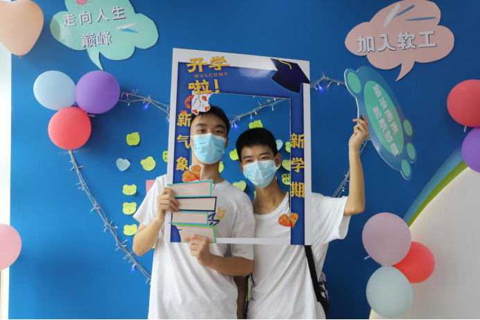 校门门口,志愿者们为新同学分发地图,搬拉行李,指引带路;信达楼楼下,我院“风华正茂,智启未来”迎新标语吸引了不少同学打卡拍照;信达楼五楼,学院展示墙全方位多角度的展示了bw西汉姆联的师资力量、学生风采、校园文化生活、实践平台与成果,新同学还可以在爱心墙上留言,记录下自己的入学心情和开学期待。除此之外,温馨路标牌、爱心气球墙、防疫便利包、健康小贴士等等,营造了温馨的开学氛围,成为了新同学在大学生活第一天的“小确幸”。