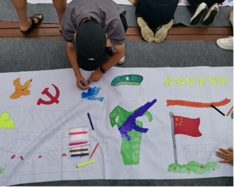 绘画分为三个板块,参与者来自各个年龄段,为庆祝中国共产党百年华诞欢聚在一起。志愿者们在青年板块绘画,他们有的妙笔生花,画出的战士精神饱满、威风堂堂;有的奇思妙想,用独特的创意讴歌伟大的中国共产党。经过一上午紧锣密鼓的创作,当最终成果呈现在眼前,在场所有人都心满意足,脸上洋溢着笑容。