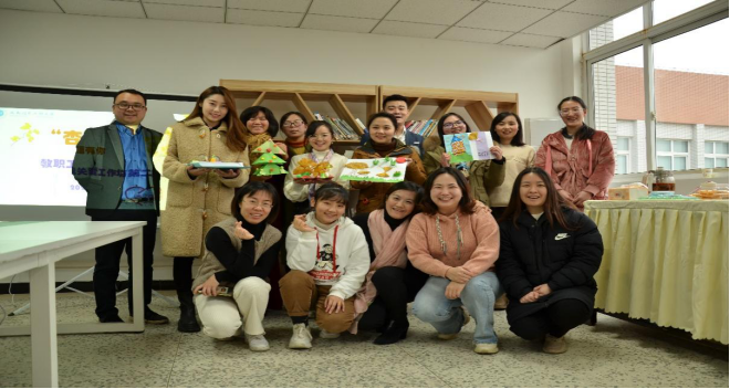 活动开始,老师们每人与周围的老师相互熟悉并交流彼此喜欢的植物和水果。万娟老师带领大家走向户外,围成一圈,手搭着肩,一起玩游戏,不仅增进了彼此之间的认识,而且相互感受到彼此的温暖与陪伴。在养生之道的环节中,公共营养师张澄老师上台分享养生之道,张老师凭借自己多年的养生经验让老师们了解了养生的诀窍。同时,为了培养老师们动手能力并学会舒缓压力,此次活动特别在绘画展示环节当中将老师们分为五组,在规定时间内,让老师们制作本组作品、上台展示、互相讨论并合照留念。