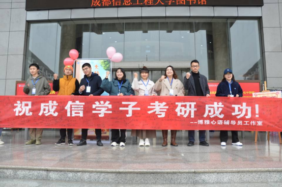 工作站志愿者们发动现场成信学子为全校考研学子写下真诚祝福语,“亲爱的“考研人”你所付出的血汗,都将化为泉水浇灌梦想之花,没有什么是枉然的,没有什么是无用的,你要相信时光看得到每一份努力拼尽全力,放手一搏,今年我们一“研”为定,明年一定研一!”