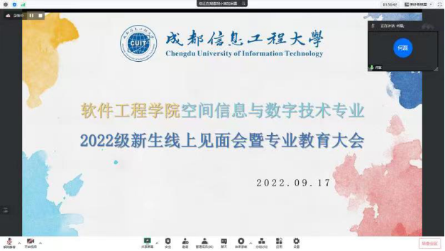 2022年9月17日-18日,我院举行了2022级新生线上见面会暨专业教育大会。本次会议分为三个会场,分别由气象空间信息工程系系主任何磊老师、数据科学与工程系系主任王亚强老师以及软件工程系系主任李蕊老师主讲,2022级全体新生参加了本次线上见面会,会议由2022级新生辅导员胡培主持。