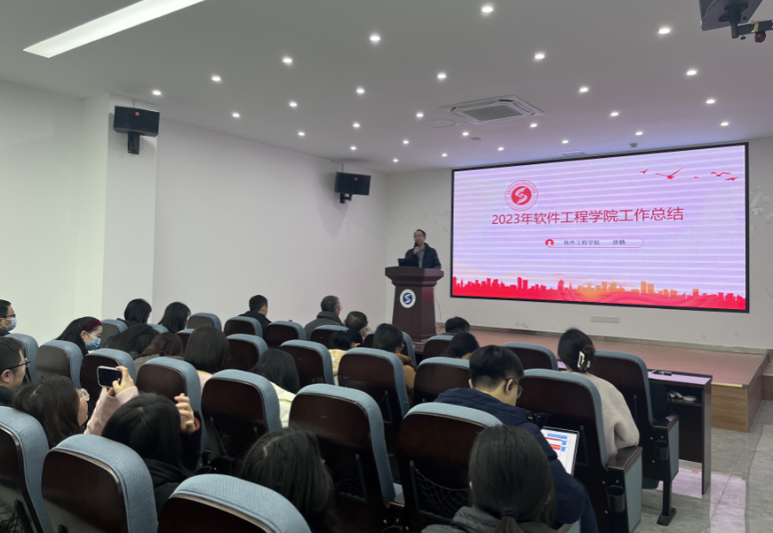 学院党委副书记、院长唐聃代表学院党政作2023年度工作述职报告。2023年,学院围绕学校重点工作,在多个领域实现新突破,超额完成学校安排的全部核心考核指标任务,取得了可喜成绩。唐聃全面总结了2023年度学院在党的建设、学科发展、专业建设以及学生工作几个方面取得的成绩,并向与会人员报告了2023年学院各项收支情况。