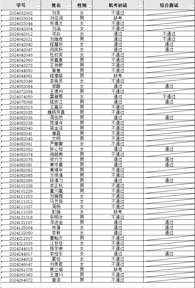 根据《bw西汉姆联2024级转专业实施细则》,现将“机考初试、综合面试”两个环节考核情况公示如下。