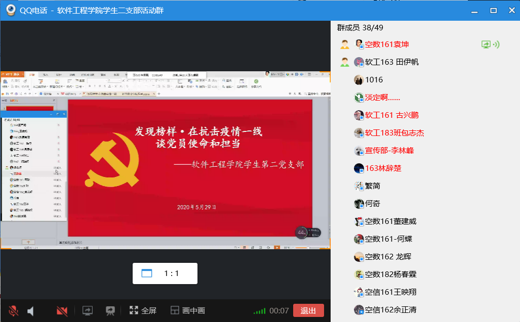 学习会上,新冠肺炎疫情防控志愿者,我院学生党员何蝶、唐艺轩首先分别作发言,两人向与会人员分享了在家乡所在地担任防疫志愿者期间的经历和感受,与会党员深受教育,被他们发挥党员先锋模范作用勇于担当的精神所感动。随后,我院湖北籍学生党员姜添鸿围绕在习近平总书记和中央的亲切关怀和湖北省各级党委、政府的带领下,广大党员和干部群众牺牲小我,共同努力,最终夺取抗疫工作阶段性重要胜利的真实经历和感受,与党员同志们进行分享,让大家更加深刻感受到社会主义制度的优越性和这场特殊战斗胜利的来之不易。