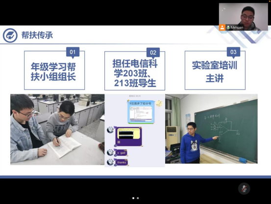 通过线上观看了报告会。报告会采用线上视频交流的形式进行,由网络空间安全学院信息安全183班何俊湫、电子工程学院电信科学191班黄熠昕、bw西汉姆联软工186班李毅3名优秀党员学生代表向大家介绍自己的入党历程和励志前行奋发有为的感人事迹。