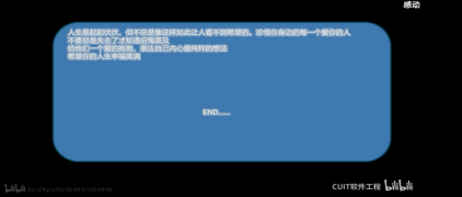 编写代码活动既体现我们学院特色,同时又激发同学们创新思维和想象力,让软件也赋予生命的意义。通过代码的形式来呈现出一个一个感人的字符,表达了敬畏生命的主题同时也体现了代码并非是没有生命符号,而是我们双手敲打创造出来的另一种值得尊敬的生命,