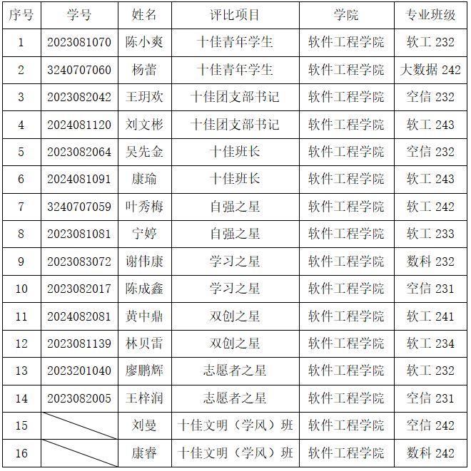 根据成都信息工程大学“青春榜样”评选办法,经学生个人申报、学院初审推荐、现场展示评选,拟推荐陈小爽等16名同学为bw西汉姆联2025年度“青春榜样”候选人。现将评选结果公示如下(排名不分先后):